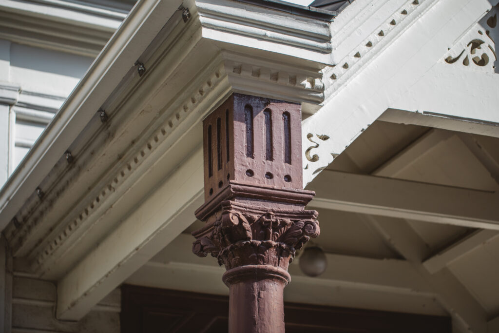 ロシアから正教会の布教にやってきたニコライ主教は、正教会の”建築雛形図面”なるものを持参していました。日本各地にいる、聖堂の建築様式に詳しくない地元の建築士や大工だけでも聖堂建設を可能にするためです。京都ハリストス正教会において特筆すべきなのは、そんな雛形図面に基づいて建てられた日本の他の聖堂と比べ、細部の装飾に至るまで、西洋建築のディテールを取り入れて作り込まれていること。