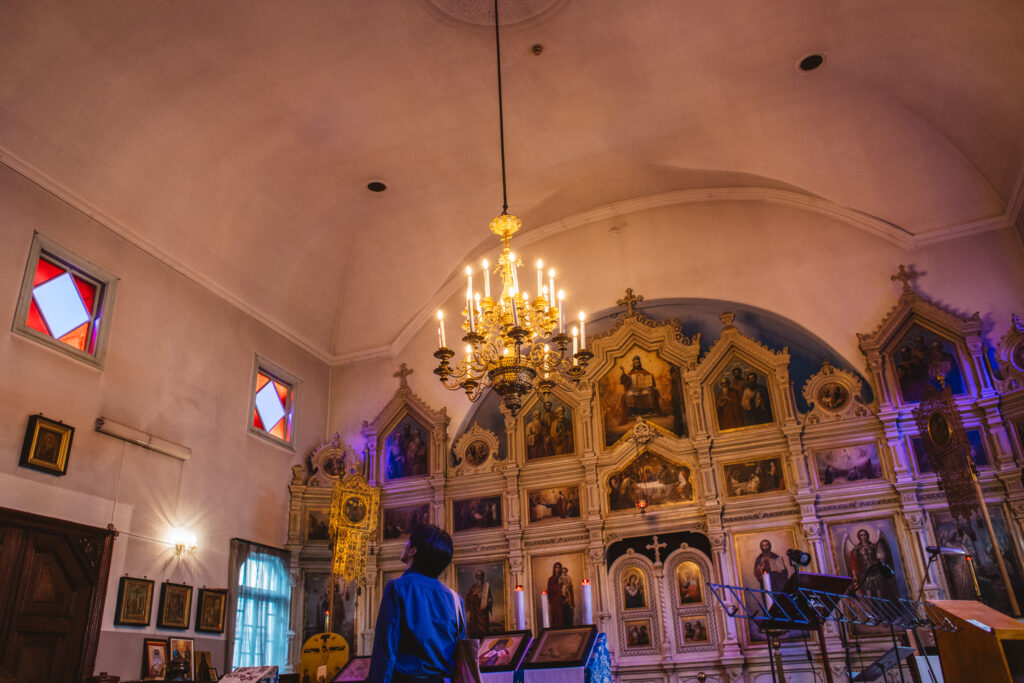 ロシアで育まれた聖堂建築がシベリアの大地を渡って京都に伝わり、松室重光という名建築家の手によってこの地に建つこととなった京都ハリストス正教会。全国の正教会の中でも類稀なる建築美と歴史の厚さについて、及川信司祭は、こう語ります。「戦争や自然災害をくぐり抜け貴重な建築が守り継がれたのは、京都という町だからこそ。新しい文化や世界観を受け入れ、熟成させることができるのが京都だと思います」。