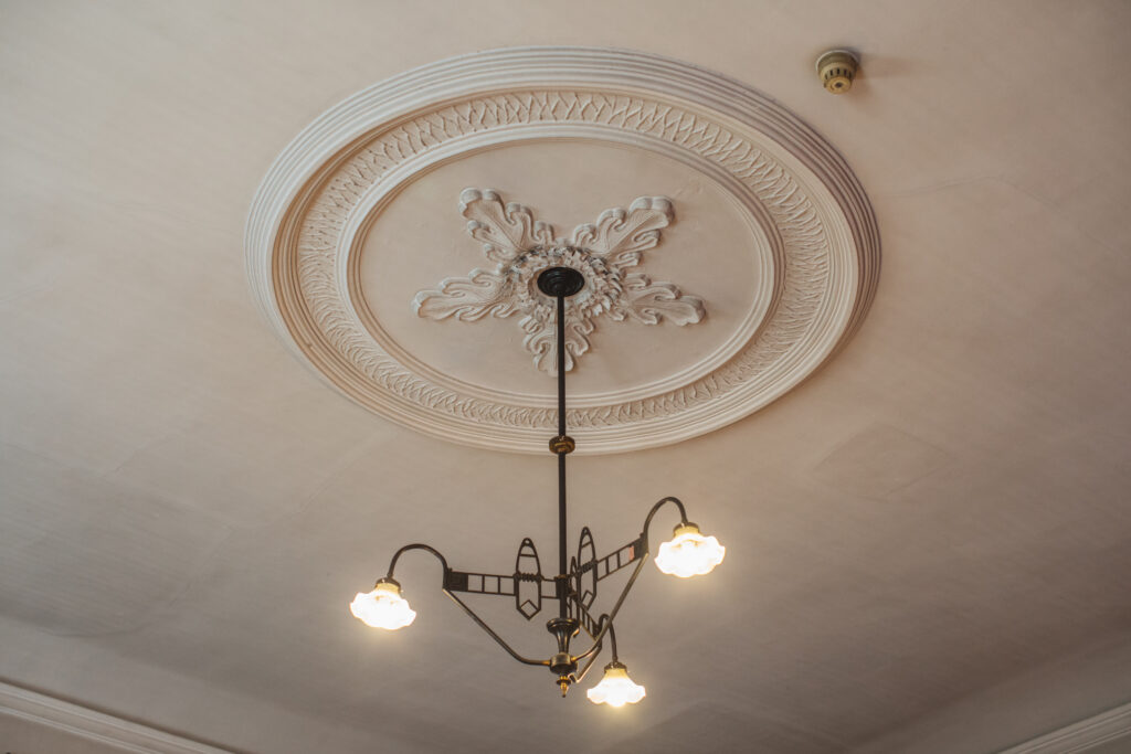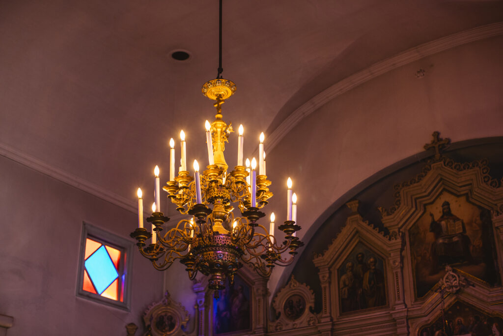 ロシアからやってきたイコノスタスや祭具などの壮麗さはもちろんのこと、建築に施された細やかな意匠も、京都ハリストス正教会ならではの注目ポイント。柱にあしらわれた装飾や照明の根元のレリーフをじっくり見ると、その繊細で美しい仕事ぶりに思わずため息が出ます。